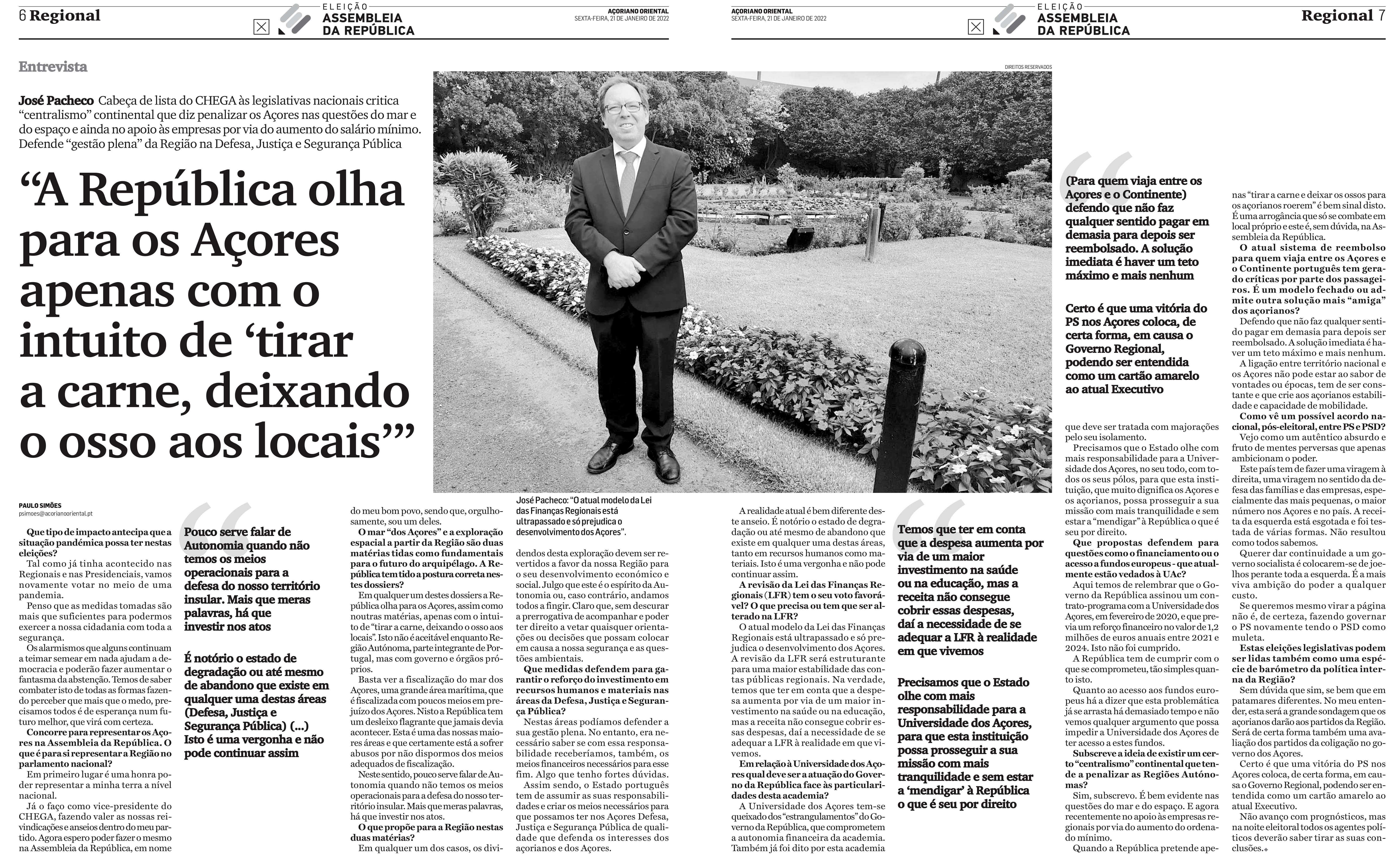 Em qualquer um destes dossiers a República olha para os Açores, assim como noutras matérias, apenas com o intuito de “tirar a carne, deixando o osso aos locais”. Isto não é aceitável enquanto Região Autónoma, parte integrante de Portugal, mas com governo e órgãos próprios.
