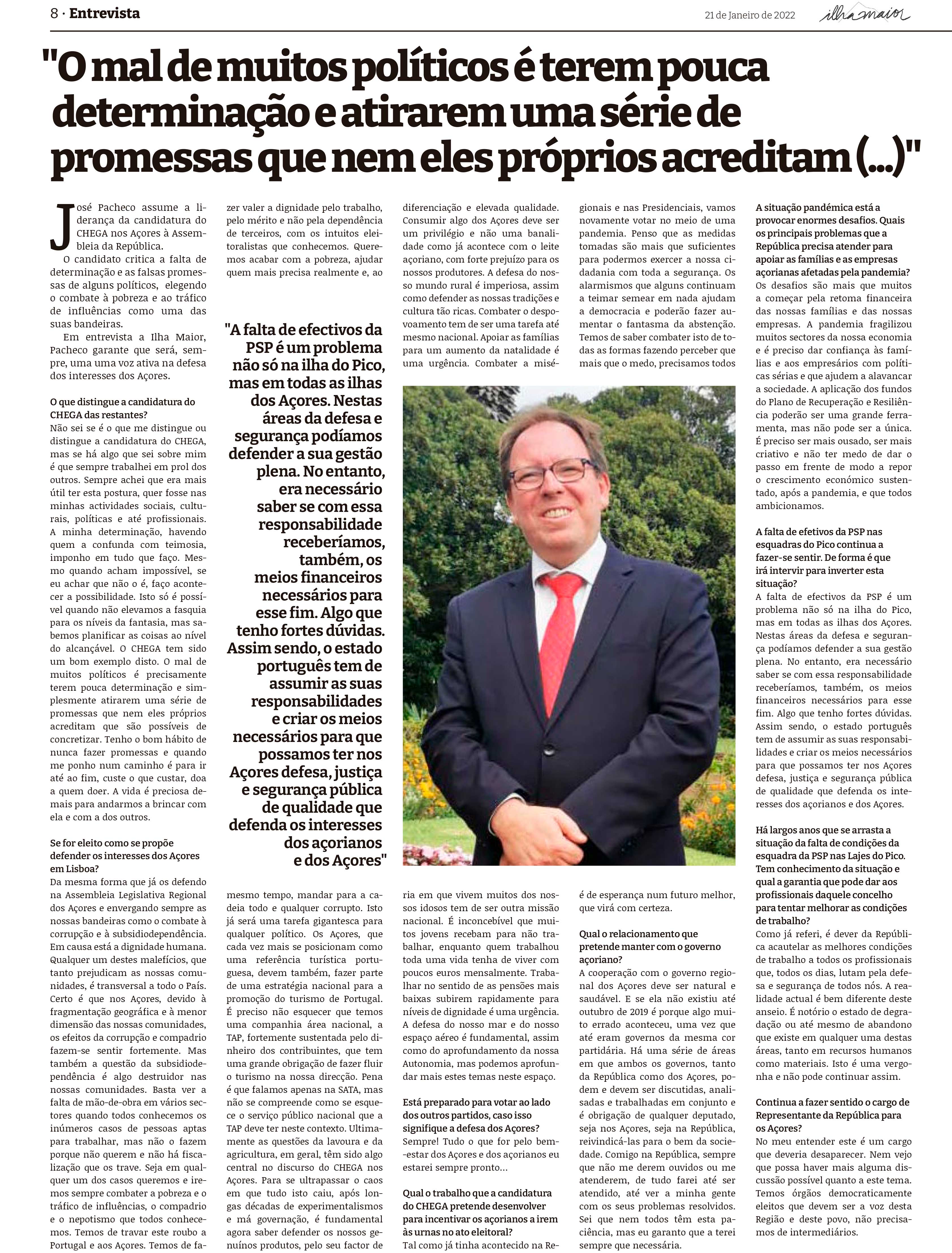 ENTREVISTA DE JOSÉ PACHECO AO JORNAL ILHA MAIOR DO PICO