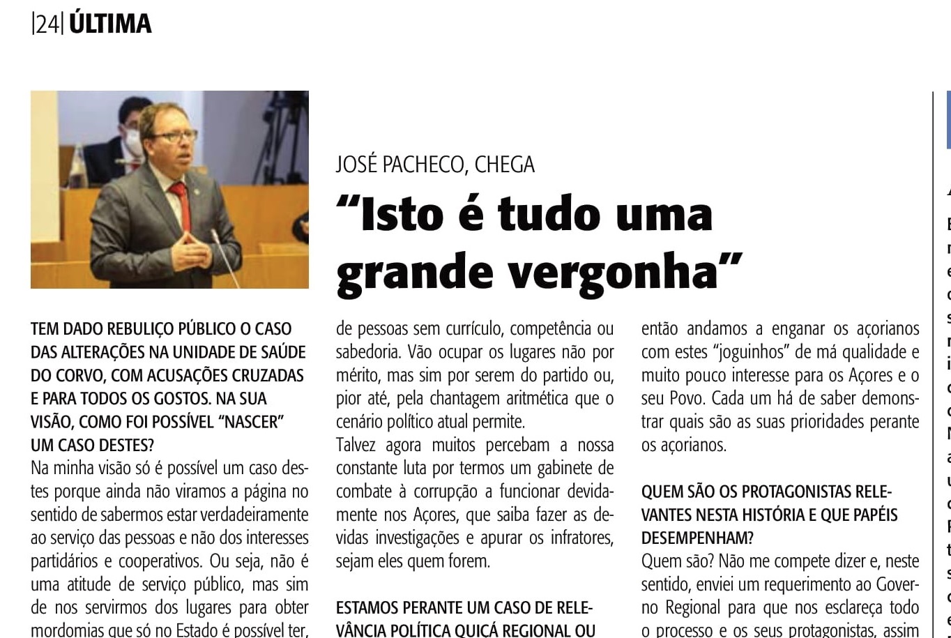 1 – Tem dado rebuliço público o caso das alterações na Unidade de Saúde do Corvo, com acusações cruzadas e para todos os gostos. Na sua visão, como foi possível “nascer” um caso destes?