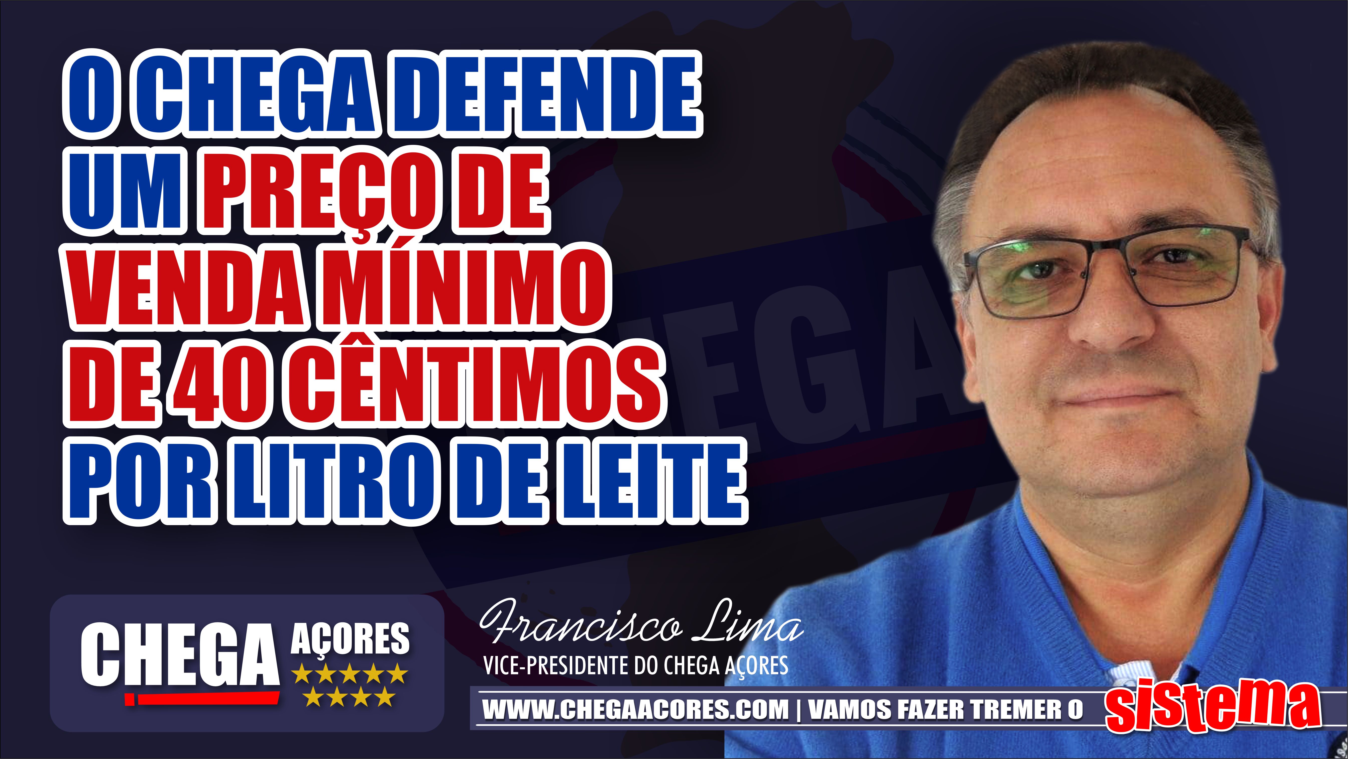 O CHEGA DEFENDE UM PREÇO DE VENDA MÍNIMO DE 40 CÊNTIMOS POR LITRO DE LEITE