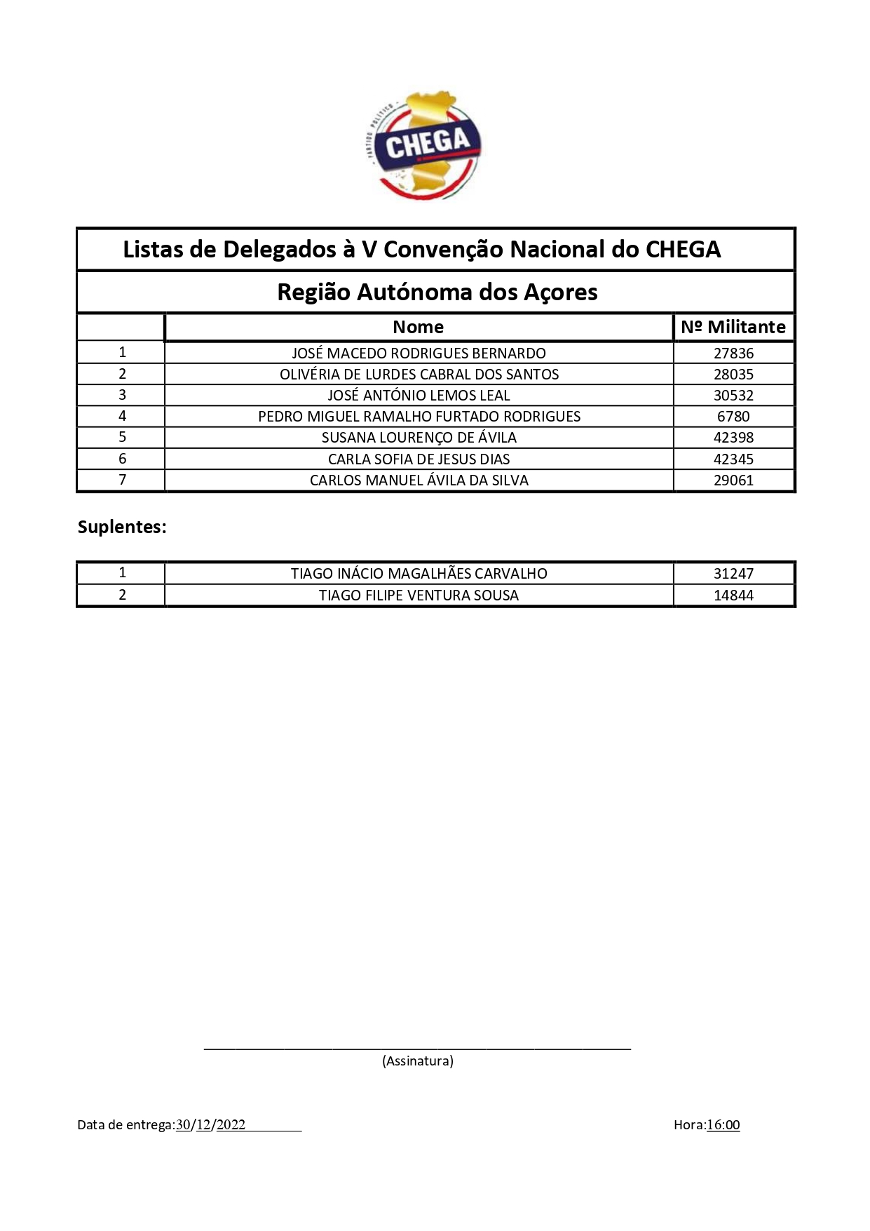 O CHEGA Açores elegeu ontem a lista dos delegados que irão marcar presença na V Convenção Nacional do partido, que se irá realizar nos próximos dias 27, 28 e 29 de Janeiro, em Santarém.