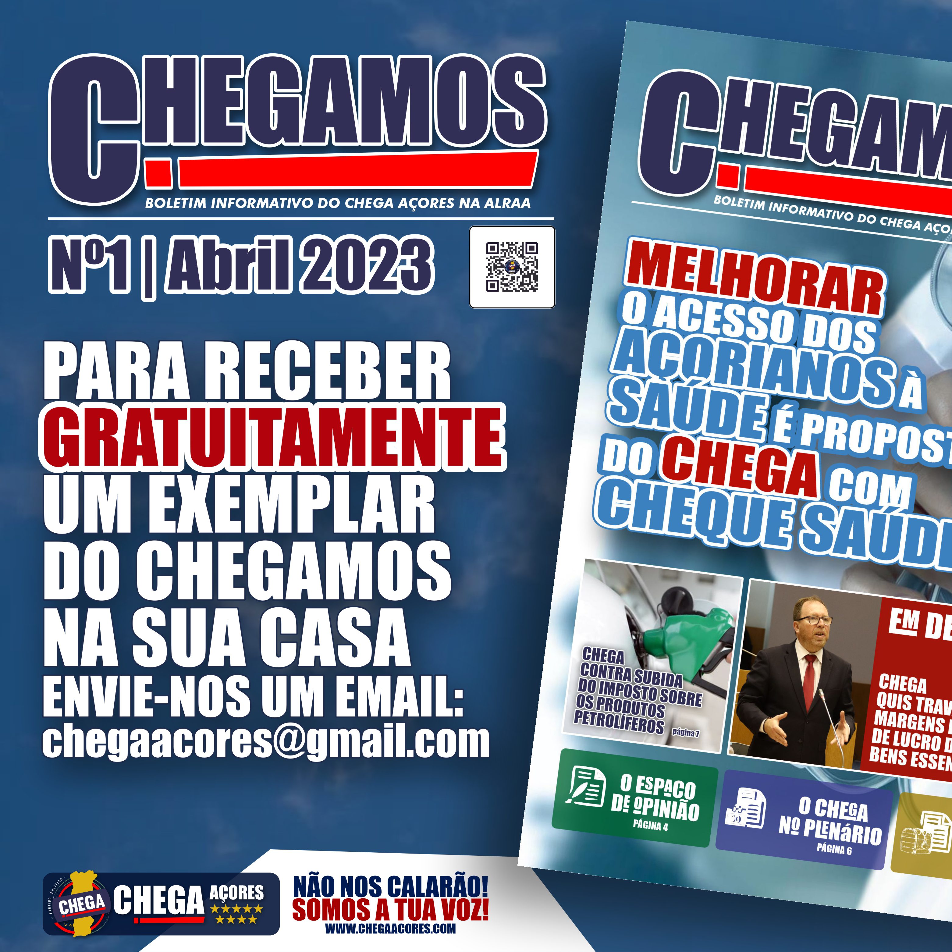 O CHEGAMOS pretende levar a todos os leitores a actividade parlamentar e política do CHEGA nos Açores. Esta é mais uma forma de estarmos próximos dos cidadãos, do povo Açoriano.