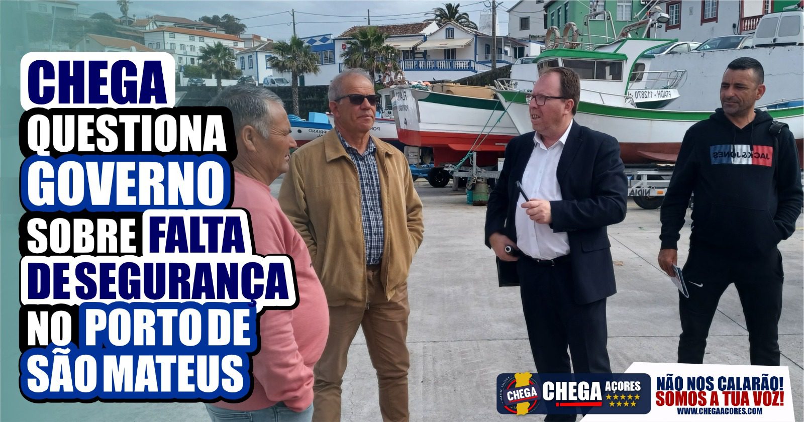 Neste sentido, o CHEGA enviou um requerimento à Assembleia Legislativa Regional onde questiona a falta de segurança naquele porto, quer para as embarcações, quer para os próprios pescadores. No documento, o deputado José Pacheco questiona o Governo Regional sobre esta falta de vigilância no Porto de São Mateus, inquirindo se o executivo está a ponderar colocar naquela infraestrutura “meios de salvaguarda dos bens e pessoas que operam naquele porto e para quando”.