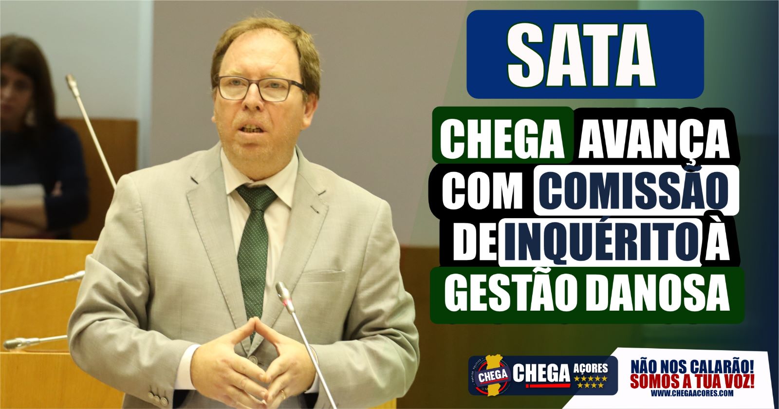 A Comissão de Inquérito à gestão danosa da SATA vai mesmo avançar com o apoio da maioria dos partidos com assento parlamentar. O CHEGA já fez chegar à Assembleia Legislativa Regional um Projecto de Resolução para que se constitua a Comissão Parlamentar de Inquérito para que se analisem “as causas do significativo agravamento do desequilíbrio económico e financeiro ao Grupo SATA entre 2013 e 2019”.