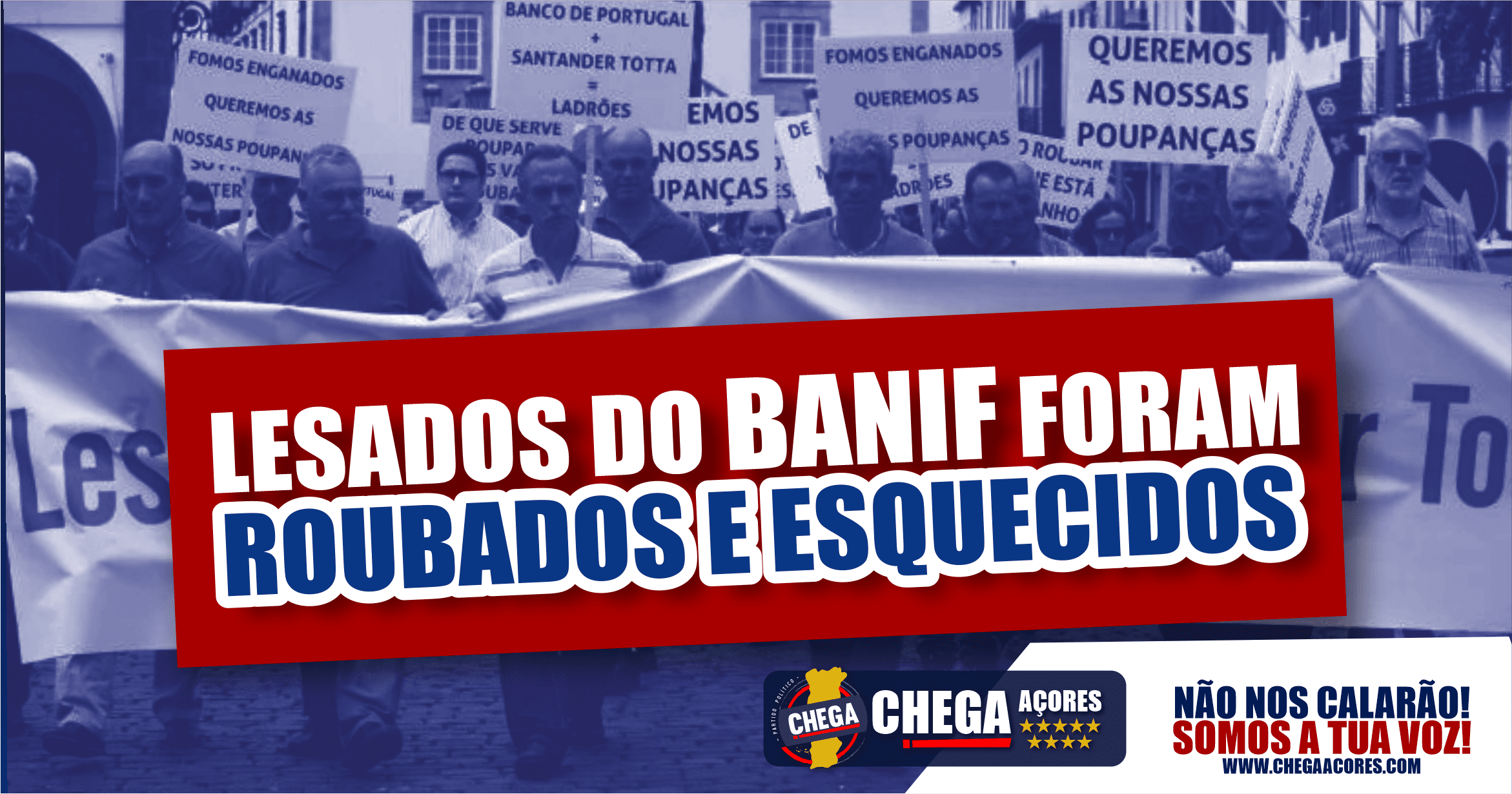 Para José Pacheco “é preciso resolver esta situação e esta recomendação ao Governo da República, por parte do CHEGA, é mais uma forma de pressionar para que se tomem rápidas decisões, não só relativamente aos lesados do BANIF, mas também do BES e do BPP”. O CHEGA “nunca se esquece daqueles que perderam as suas poupanças, muitos que até foram induzidos a contratarem produtos financeiros sem perceberem o que estavam a contratar, e não têm voz activa para reivindicar o que lhes foi tirado. O CHEGA nunca se vai calar perante estas injustiça”, rematou José Pacheco.