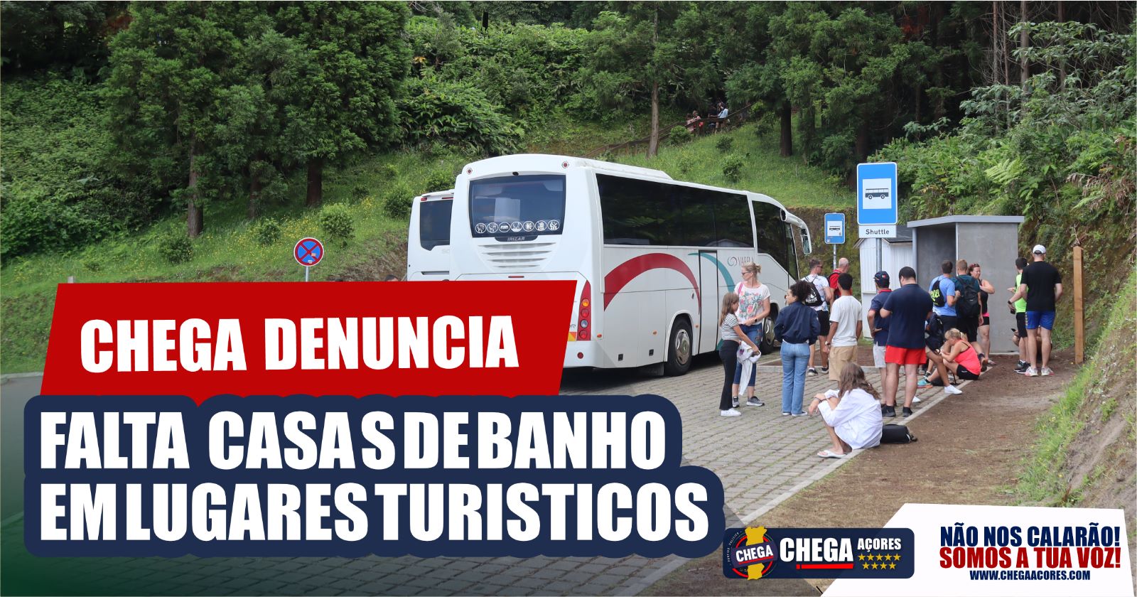 Já no miradouro da Lagoa do Fogo, o parque de estacionamento também não disponibiliza instalações sanitárias, tendo o CHEGA testemunhado a necessidade de vários turistas, que procuraram insistentemente casas-de-banho, acabando por usar as imediações para resolverem a sua necessidade na natureza.
