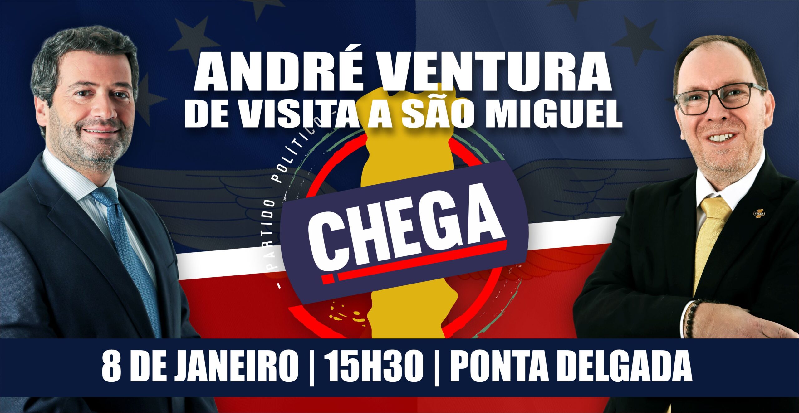 O Presidente do CHEGA, André Ventura, vai estar na próxima Segunda-feira, dia 8 de Janeiro, em São Miguel.