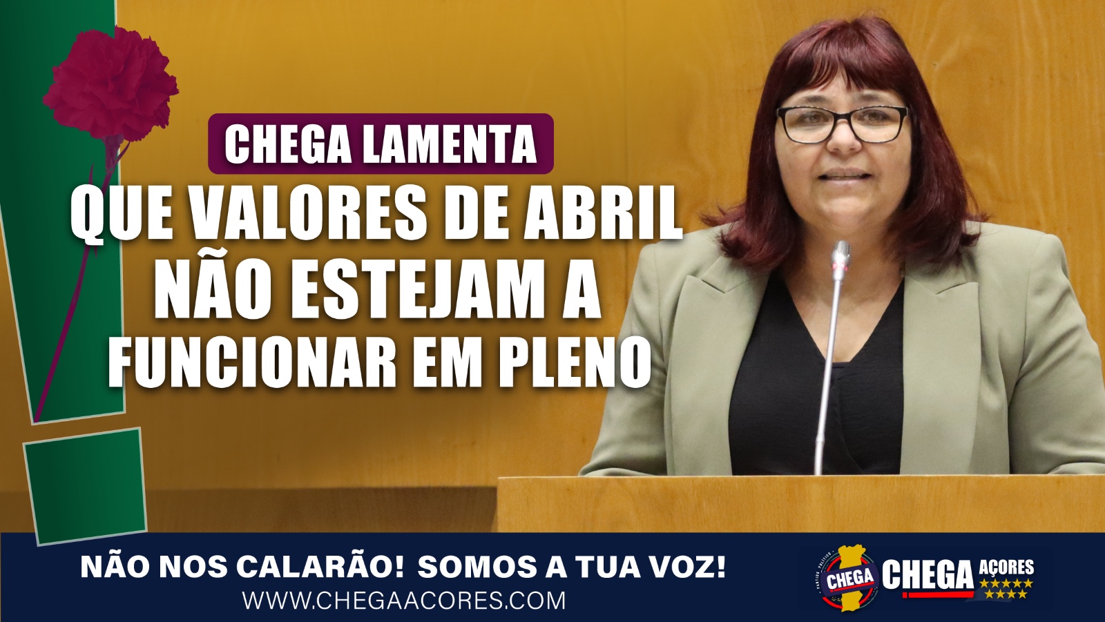 “A Liberdade de Abril” foi o tema da declaração política do CHEGA, apresentada hoje pela deputada Olivéria Santos na Assembleia legislativa Regional, lembrando que a chamada Revolução dos Cravos “trouxe liberdade de expressão, libertou Portugal das amarras de ditadores”, mas deixando o alerta que foi graças ao 25 de Novembro de 1975 que “Portugal não se tornou num país comunista. Espero que nesta casa se comemore, com o mesmo vigor, também o 25 de Novembro à semelhança do que acontece com o 25 de Abril”.