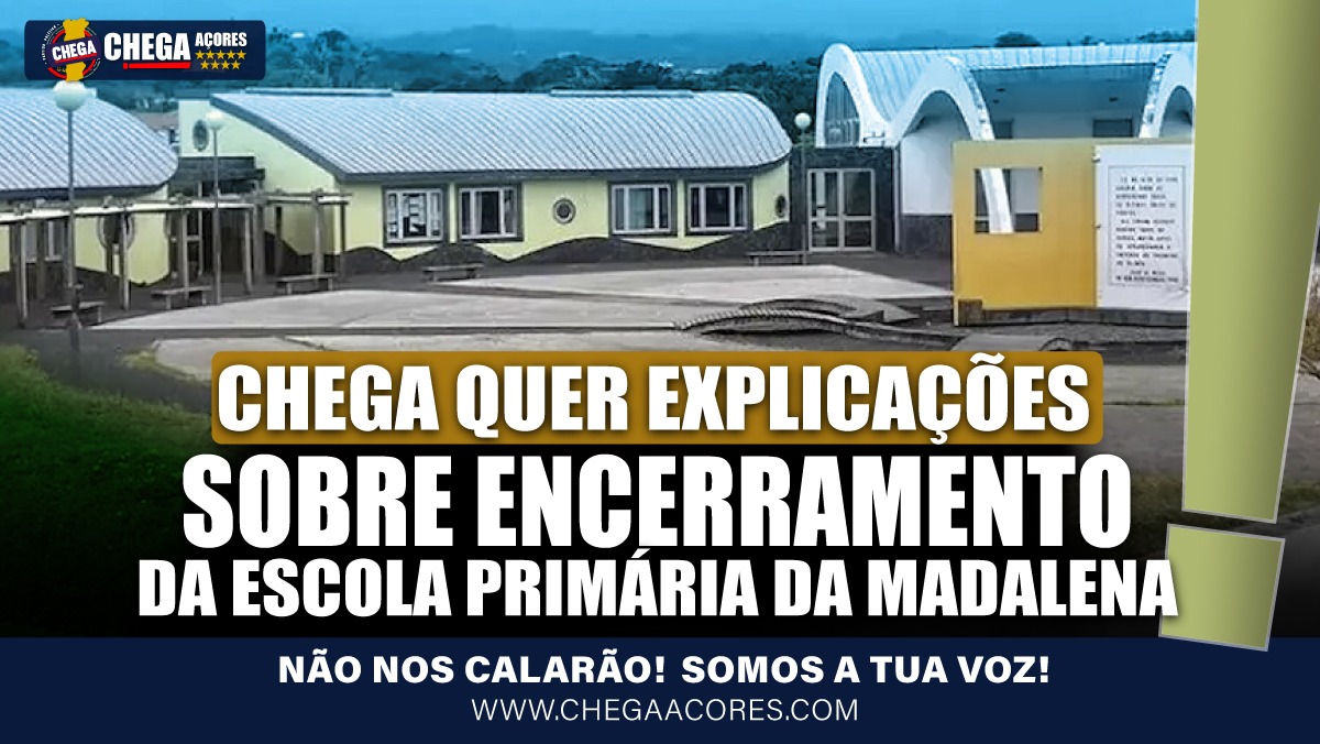 O Grupo Parlamentar do CHEGA enviou hoje à Assembleia Legislativa Regional um requerimento onde pede explicações sobre o encerramento da Escola Primária da Madalena, na ilha do Pico. O requerimento surge depois do anúncio, por parte da Câmara Municipal da Madalena, que a escola – que alberga 170 alunos do primeiro ciclo – iria encerrar por não oferecer condições de segurança aos alunos, docentes e pessoal não docente.