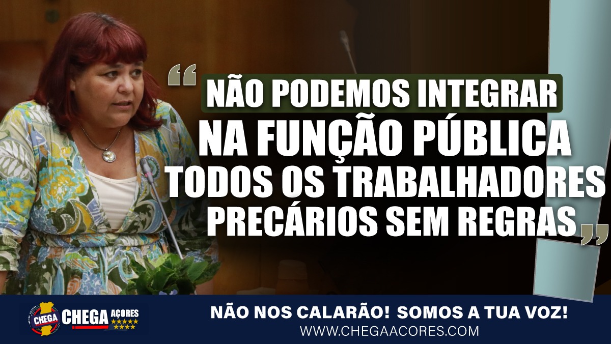O CHEGA denunciou hoje a necessidade de haver na Região “uma estratégia de combate à precariedade”, mas que não pode ser a qualquer custo. A deputada Olivéria Santos indicou que se trata de uma questão de “justiça social para todos os Açorianos que estão como trabalhadores precários”.