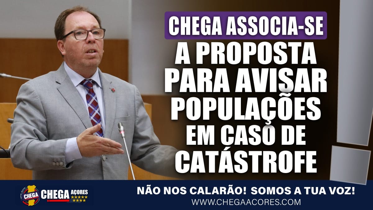 O CHEGA aprovou hoje uma proposta de Decreto Legislativo Regional, apresentada pelo Governo Regional, que adapta o sistema nacional de monitorização e comunicação de risco, de alerta especial e de aviso à população a toda a Região.