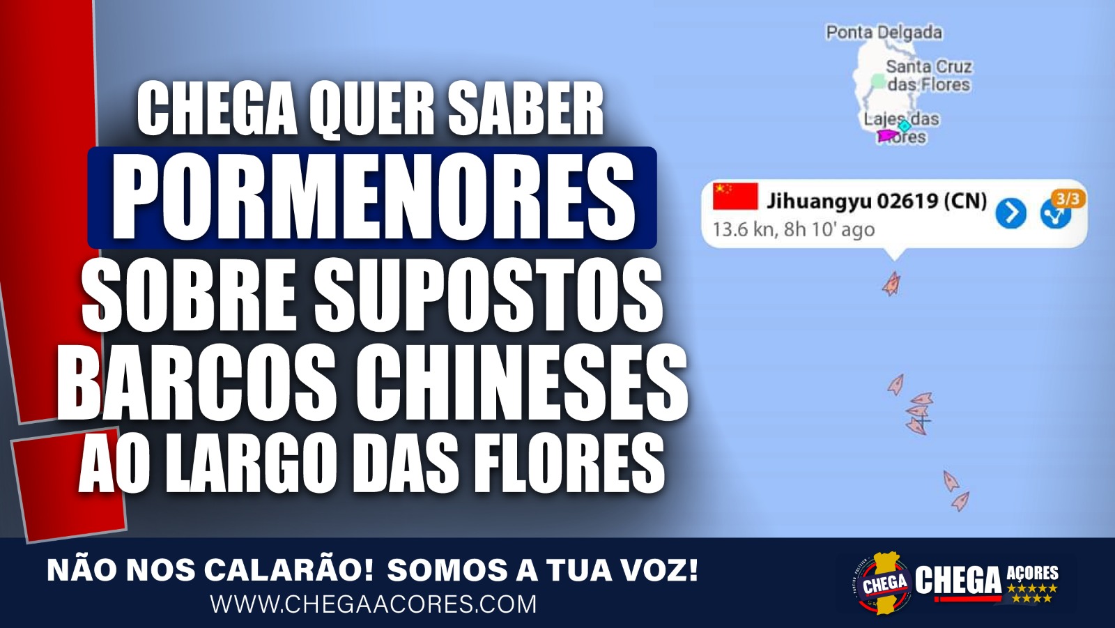 O Grupo Parlamentar do CHEGA Açores enviou ontem um requerimento à Assembleia Legislativa Regional onde questiona o Governo Regional sobre os barcos de pesca chineses que, alegadamente, estiveram ao largo da ilha Flores a pescar na passada Quarta-feira.