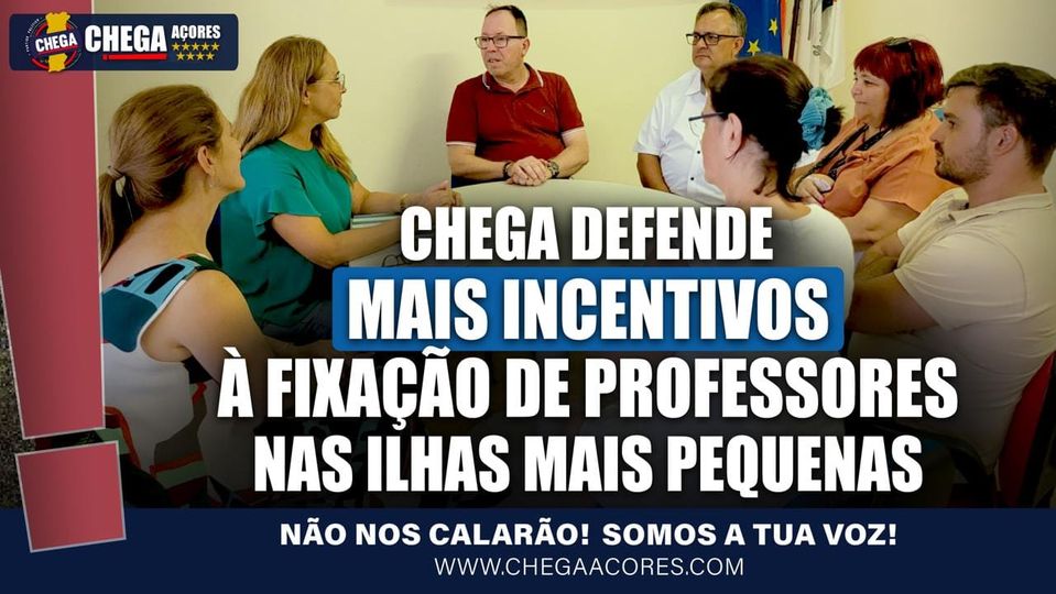 InícioNotíciasCHEGA DEFENDE MAIS INCENTIVOS À FIXAÇÃO DE PROFESSORES NAS ILHAS MAIS PEQUENAS