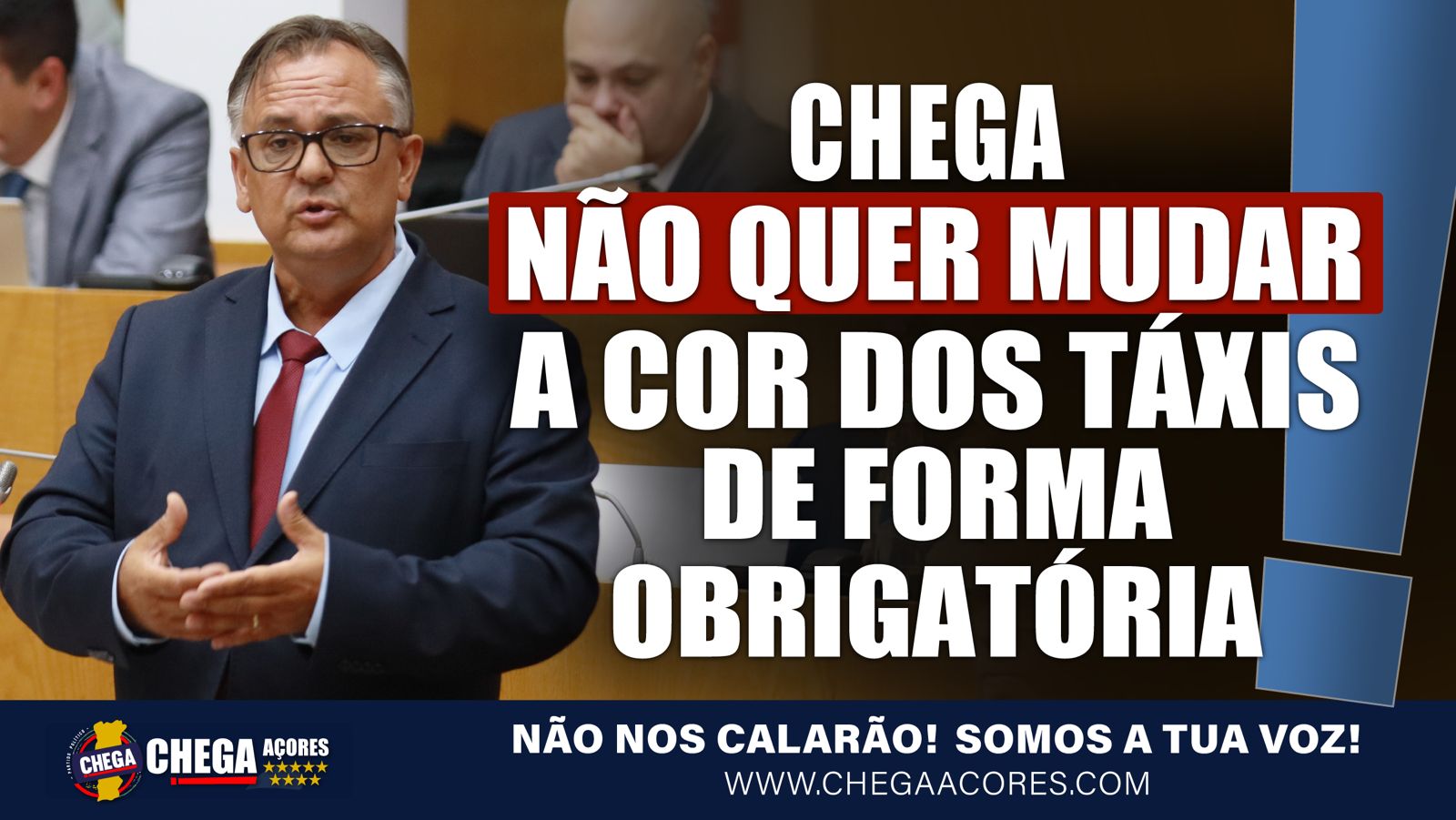 O CHEGA absteve-se hoje da alteração da cor padrão para os novos táxis dos Açores, que obriga também os veículos já existentes a fazerem essa alteração até final de 2032. O Projecto de Resolução foi apresentado pela Iniciativa Liberal, e pretende também que se regresse às cores verde – na parte superior do veículo – e preto – na parte inferior do veículo.