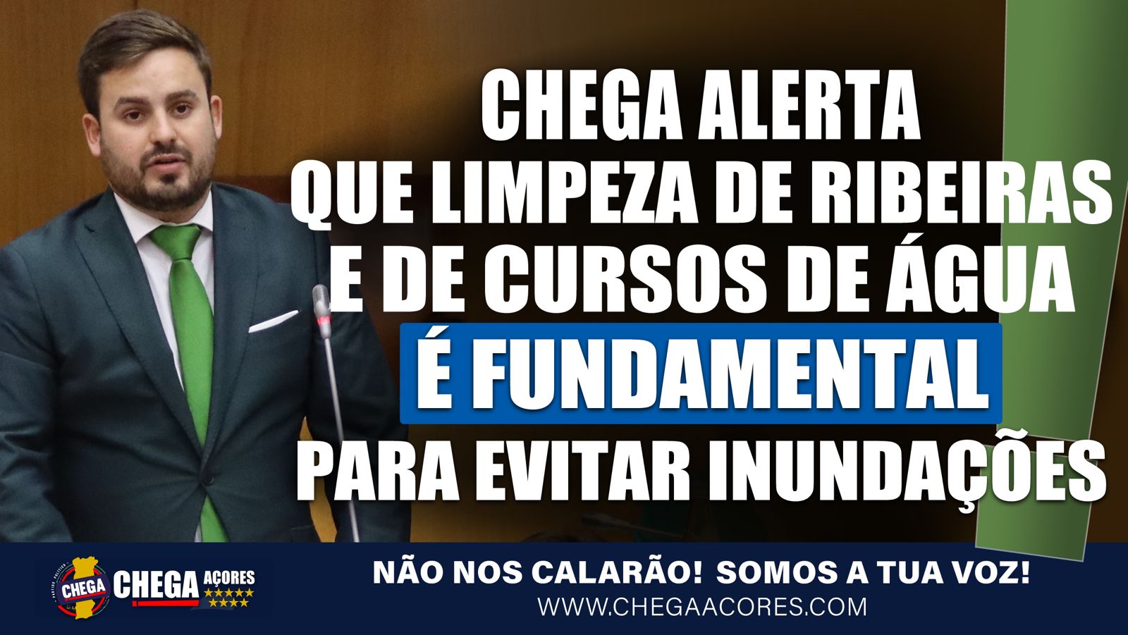 O CHEGA considerou hoje um “avanço crucial na protecção e gestão de riscos naturais”, o Plano de Gestão de Riscos de Inundações dos Açores, apresentado hoje pelo Governo Regional, no entanto, “deve ser encarado como um compromisso contínuo”, que exige a colaboração de todos, desde o Governo à comunidade em geral, principalmente, para a limpeza das ribeiras e dos cursos de água. “Uma tarefa urgente que não pode ser negligenciada”, já que a falta de limpeza “aumenta o risco de inundações que podem não só afectar o nosso ambiente, mas também a segurança das nossas casas e das nossas famílias”, alertou o deputado José Paulo Sousa.