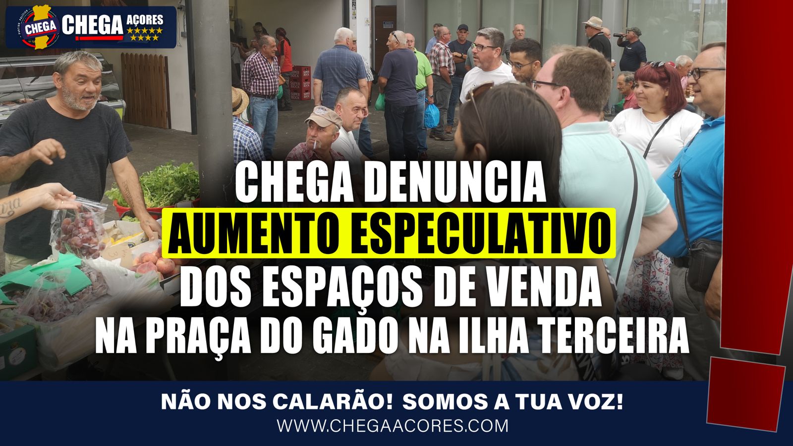 O CHEGA está contra os aumentos especulativos que se estão a verificar no aluguer de espaços de venda na chamada Praça do Gado, situada na Vinha Brava, na ilha Terceira.