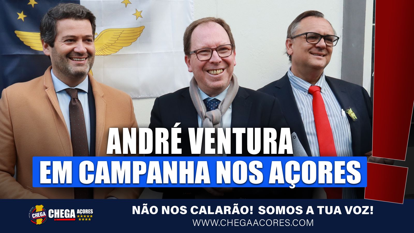 O Presidente Nacional do CHEGA, e candidato a Primeiro-Ministro, André Ventura, vai estar em São Miguel, nos próximos dias 13 e 14 de Abril, onde manterá contactos com a população acompanhado por Francisco Lima, o candidato do CHEGA Açores à Assembleia da República nas próximas eleições legislativas de 18 de Maio, e pelo líder do CHEGA Açores, José Pacheco.