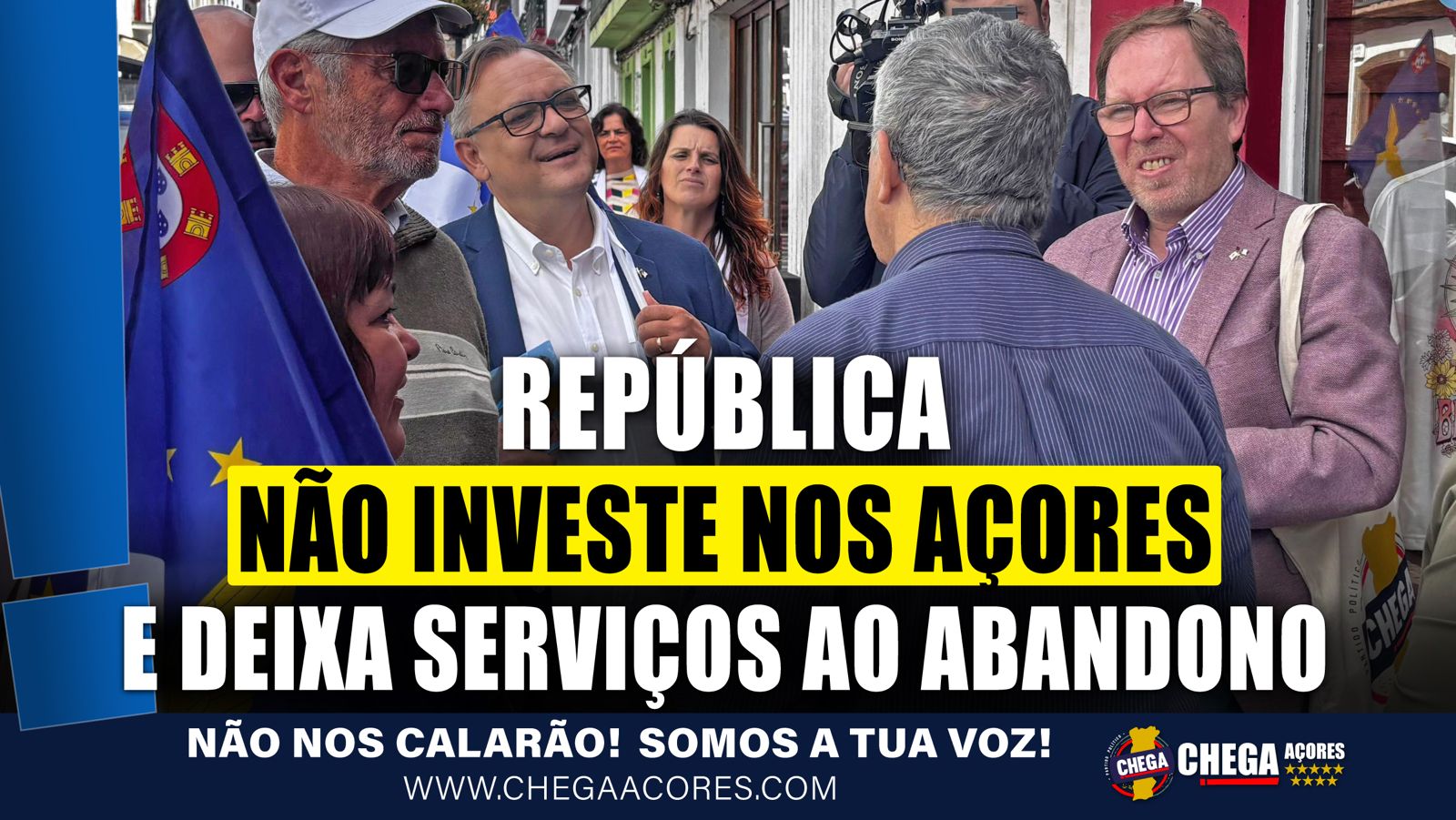 No centro histórico de Angra do Heroísmo, os candidatos do CHEGA pelo círculo eleitoral dos Açores às próximas legislativas, foram identificando e denunciando os edifícios e serviços da República que estão ao abandono. Dos populares com quem se cruzavam foram ouvindo a “vergonha” dos vários edifícios abandonados, e as queixas dos serviços que agora estão praticamente sem funcionários, como o registo predial. A comitiva do CHEGA foi recebendo elogios e incentivos para que quando chegar à República, se denuncie o que está mal na Região e se obrigue o Estado a cumprir com as suas obrigações.