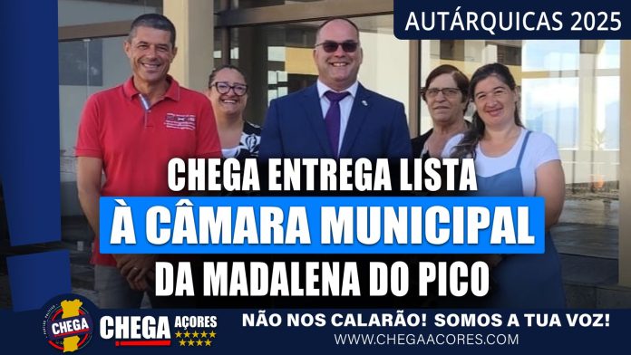 O CHEGA Açores entregou hoje, no Tribunal da ilha do Pico, a lista de candidatos à Câmara Municipal da Madalena, bem como Assembleia Municipal da Madalena e Junta de Freguesia das Bandeiras, às próximas eleições autárquicas de 12 de Outubro de 2025.