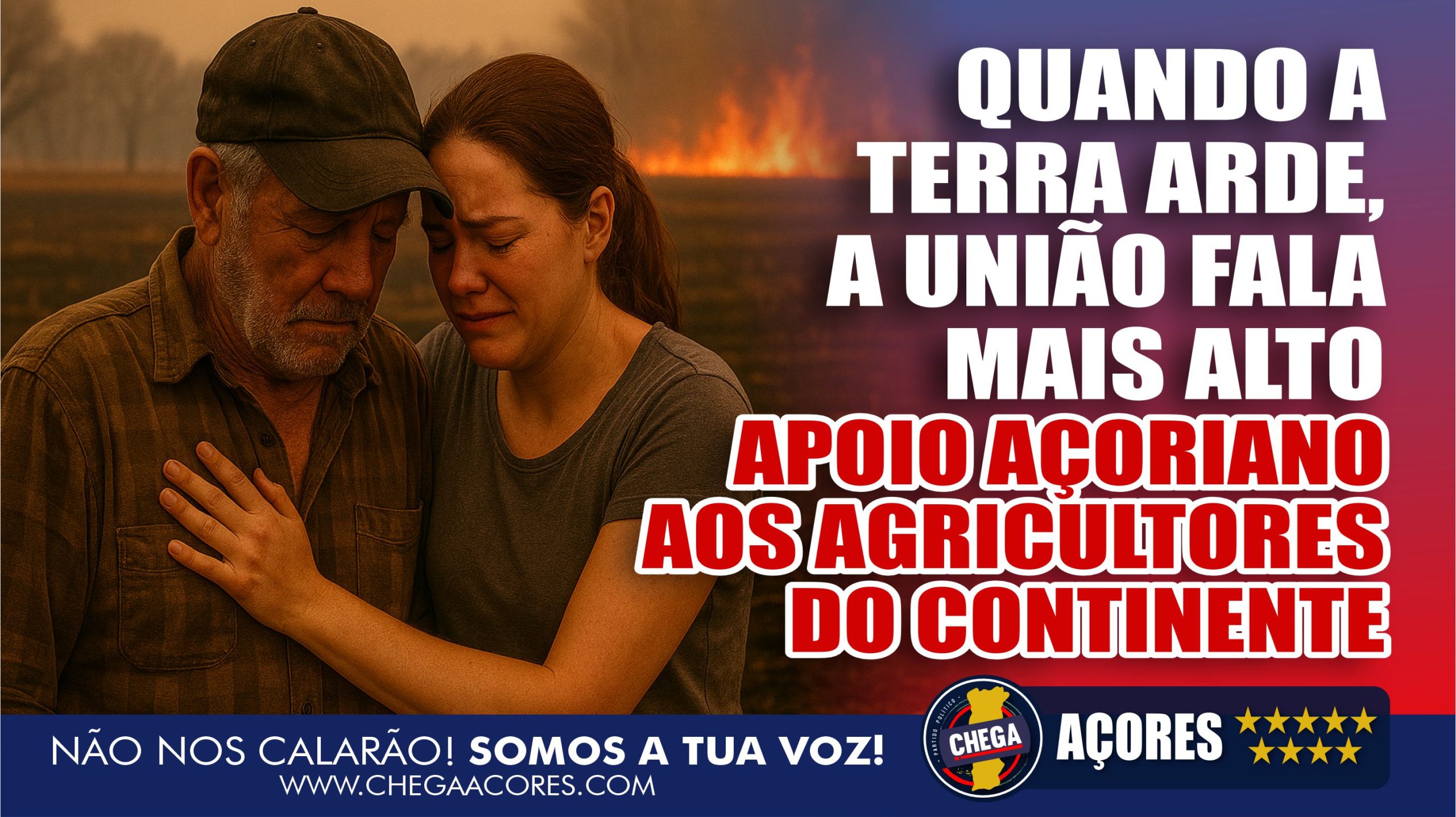 José Pacheco, Presidente do CHEGA Açores, lançou um apelo direto ao Presidente da Federação Agrícola dos Açores, Jorge Rita: que os agricultores Açorianos, mais uma vez, deem um exemplo de grandeza e solidariedade para com os agricultores nacionais que, neste momento, vivem o drama cruel dos incêndios que devastam o país.