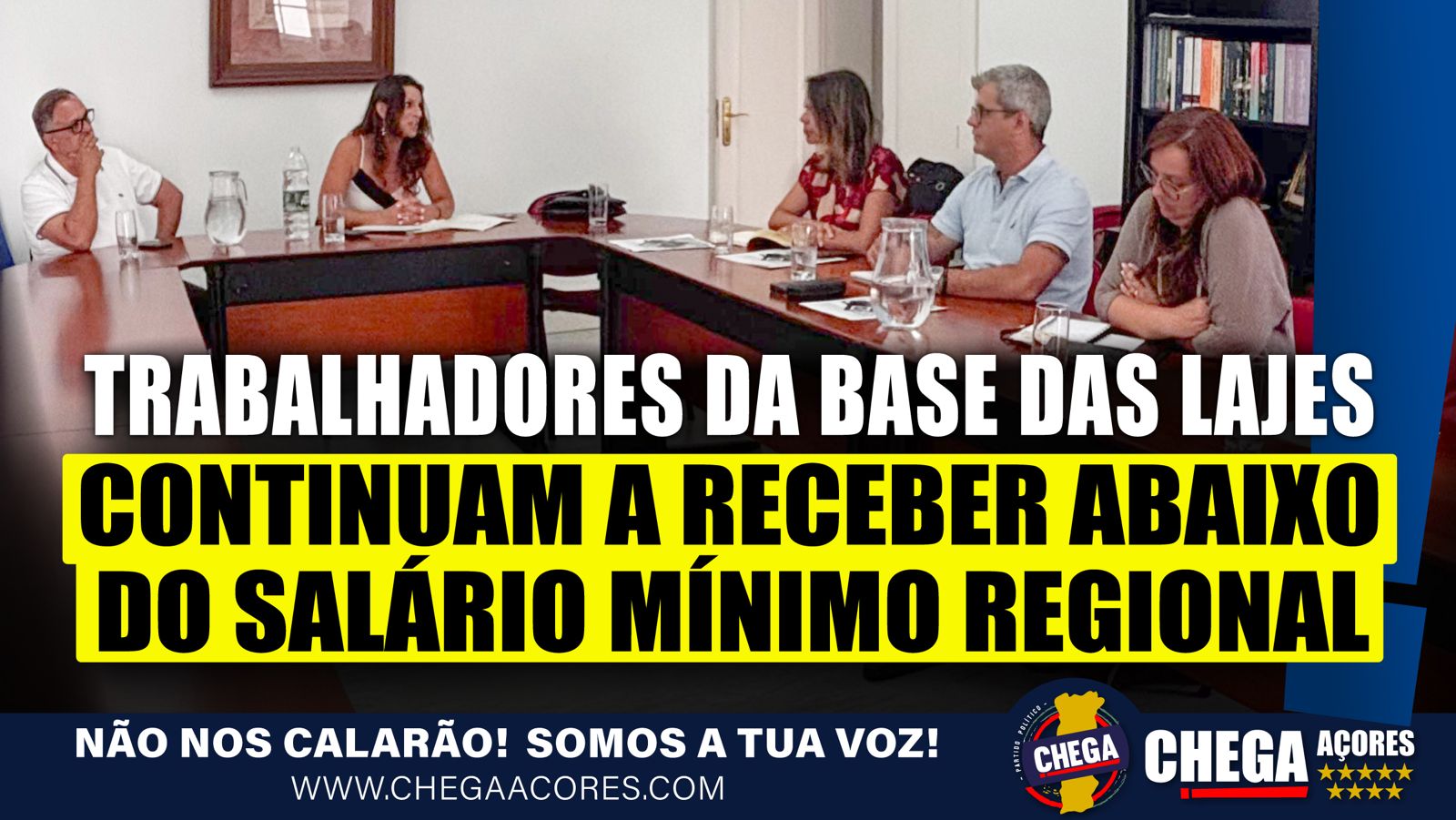 O CHEGA considera inaceitável que, em território nacional, os direitos dos trabalhadores portugueses não sejam respeitados, fruto de acordos mal negociados e da total falta de empenho do Governo da República. O partido acusa directamente o Ministro dos Negócios Estrangeiros e o Ministro da Defesa de abandonarem os trabalhadores e os interesses da Região.