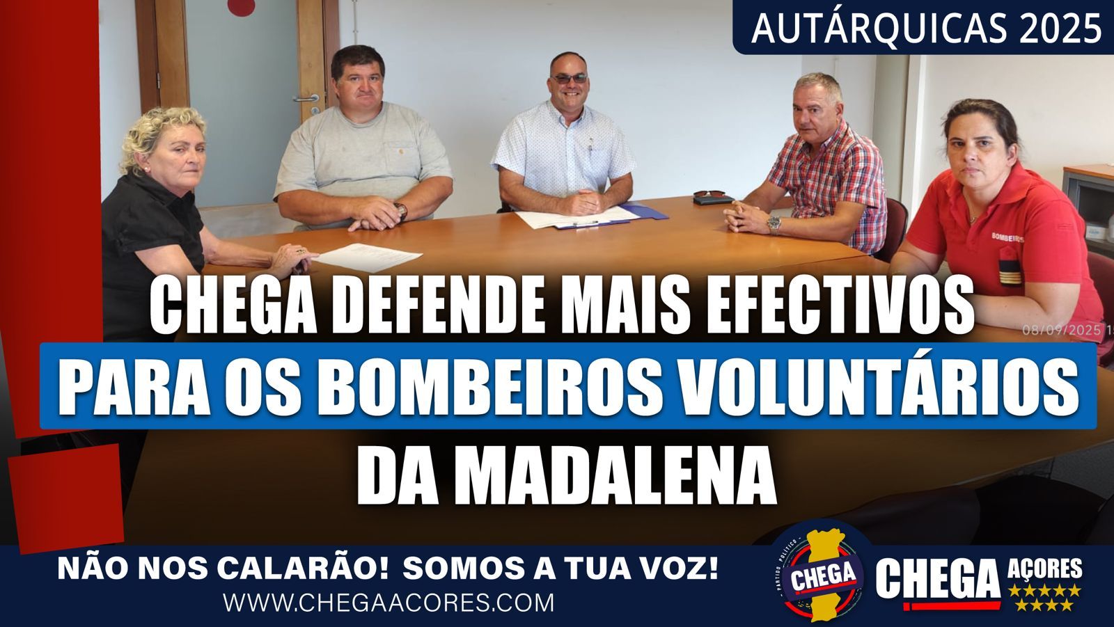 Gualter Sousa, o candidato do CHEGA Açores à Câmara Municipal da Madalena, no Pico, reuniu com a Associação Humanitária dos Bombeiros Voluntários da Madalena para “ouvir de perto quem todos os dias dá o melhor de si para proteger a nossa comunidade”.