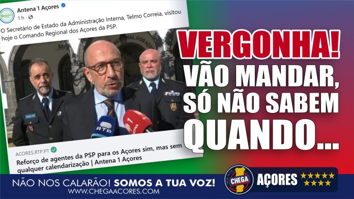 É simplesmente vergonhoso o que veio dizer Telmo Correia aos Açores: prometem reforçar o número de agentes da PSP, mas não sabem quando.