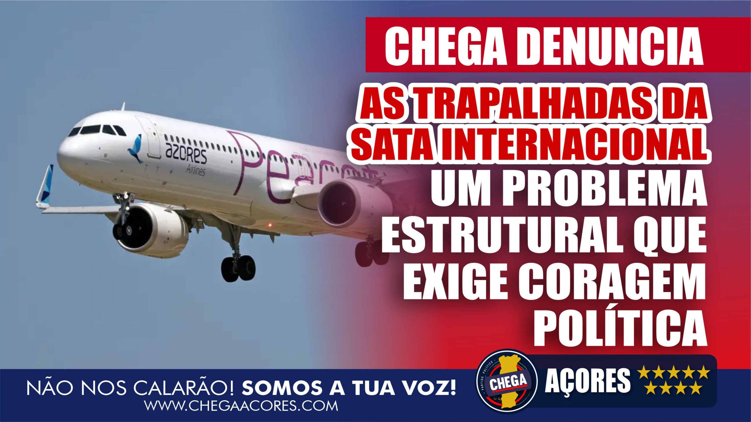 O CHEGA Açores tem sido claro desde o primeiro momento: manter a SATA Internacional como está é simplesmente irresponsável. Não é sério continuar a pedir sacrifícios aos açorianos, seja através de impostos, cortes noutros setores essenciais ou endividamento da Região, para sustentar uma empresa que não demonstra capacidade de ser viável.