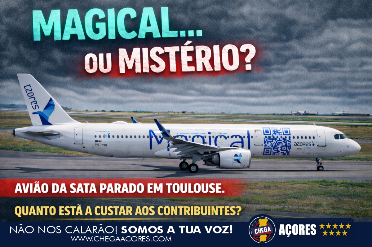O Grupo Parlamentar do CHEGA/Açores entregou hoje um requerimento na Assembleia Legislativa da Região Autónoma dos Açores a questionar o Governo Regional sobre a situação da aeronave Airbus A321LR da Azores Airlines, identificada com a designação promocional “Magical”, que se encontra estacionada na cidade de Toulouse, em França.
