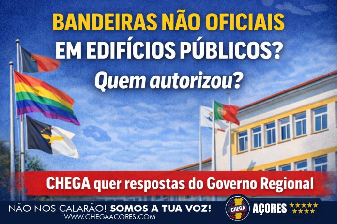 Tem-se verificado em diversos edifícios públicos nos Açores a presença de bandeiras que não correspondem às bandeiras oficiais da República Portuguesa, da Região Autónoma dos Açores ou da União Europeia. Uma situação que levanta dúvidas ao Grupo Parlamentar do CHEGA Açores quanto ao enquadramento legal desta prática, e que já motivou um requerimento ao Governo Regional com um pedido de esclarecimento.