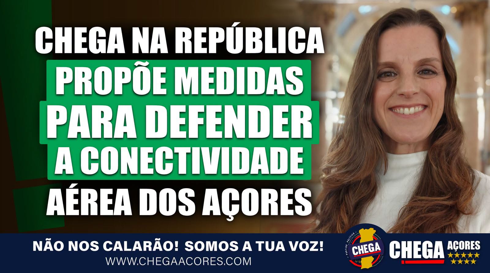 A deputada do CHEGA eleita pelos Açores à Assembleia da República, apresentou um Projecto de Resolução para exigir medidas urgentes que garantam a conectividade aérea e a competitividade económica da Região Autónoma dos Açores.